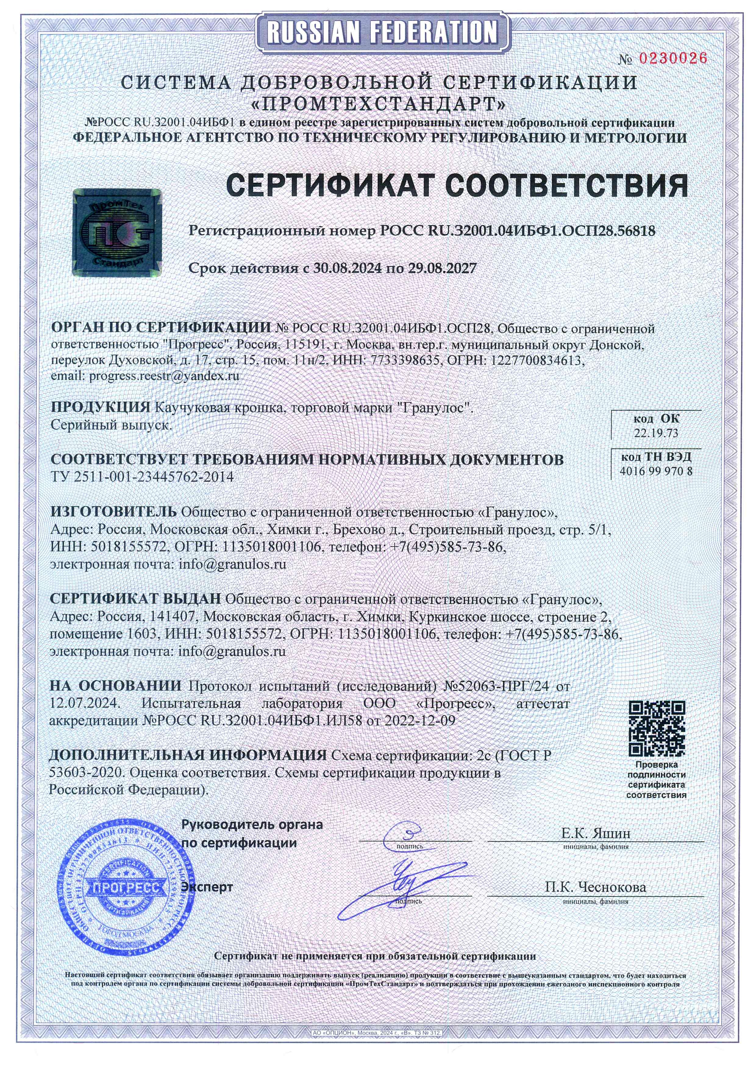 Гранулят из синтетического каучука и стойких пигментов. Экологически чистый материал, входит в состав бесшовных спортивных покрытий. Устойчив к воздействию ультрафиолета, водных и химических растворов. Сохраняет яркость цвета на протяжении 10–15 лет.