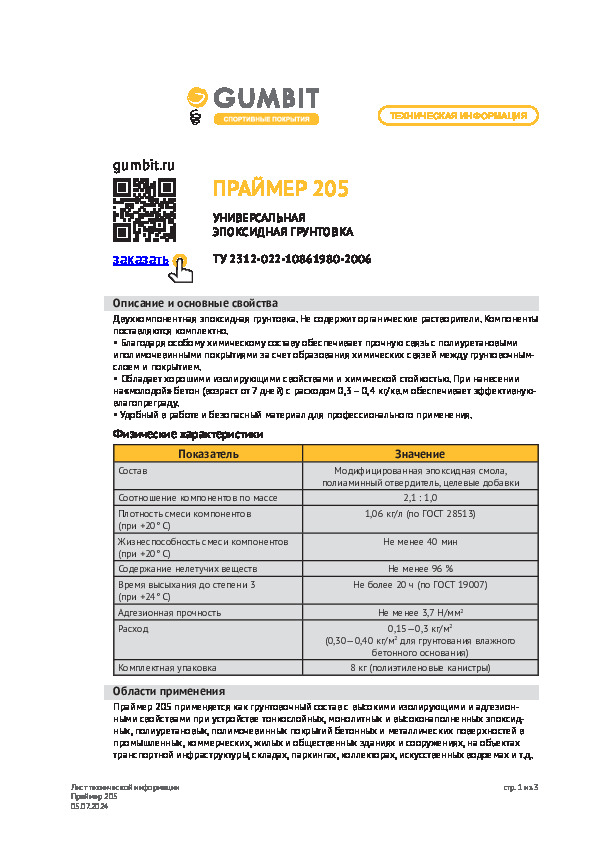 Праймер 205 используют для обработки напольных покрытий в жилых, общественных, производственных и складских помещениях. Состав разрешается наносить на бетонные и металлические поверхности. Перед применением компоненты эпоксидной грунтовки соединяют в смесительной ёмкости и доводят до однородного состояния. Поверхности под грунтовку обязательно очищают от масел и жиров, высушивают.