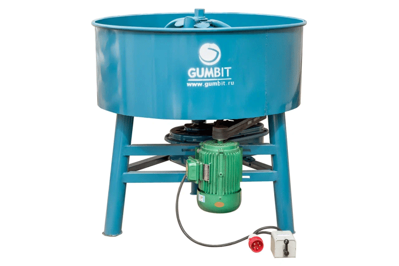 Миксер с электроприводом для производства резиновых покрытий. Перемешивает резиновую крошку, полиуретановое связующее и пигменты в однородную массу за 5 минут. Максимально допустимая разовая загрузка — 90 кг.